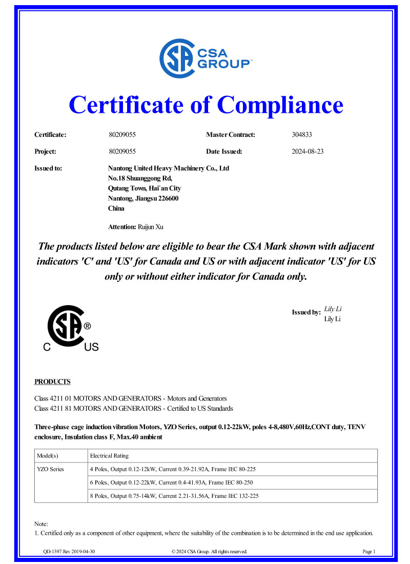 電機CSA認證證書